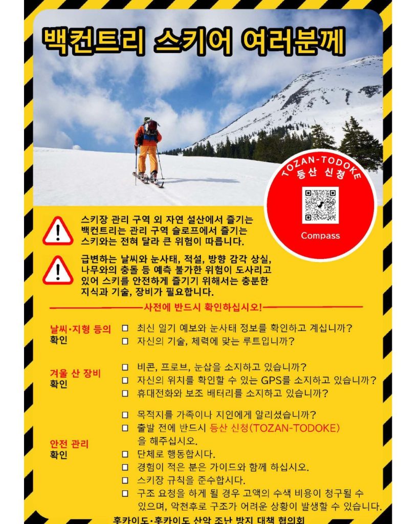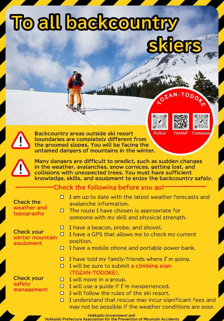 【注意喚起】バックカントリースキーヤーのみなさま