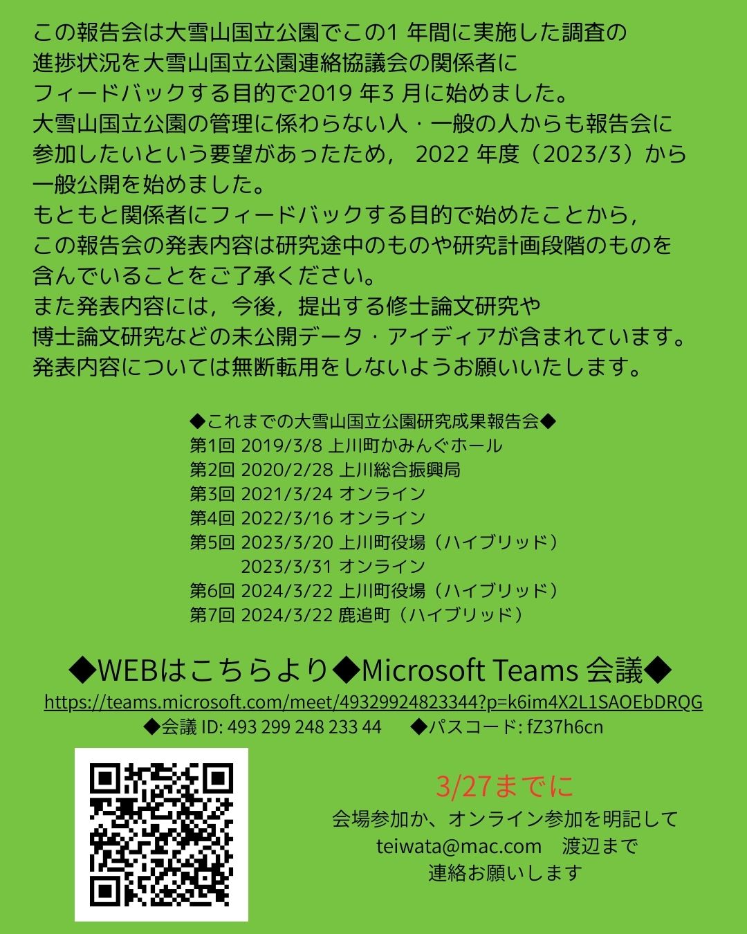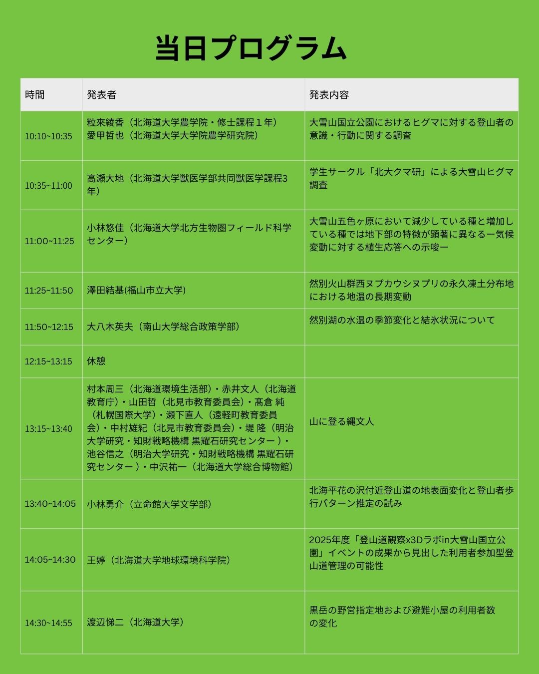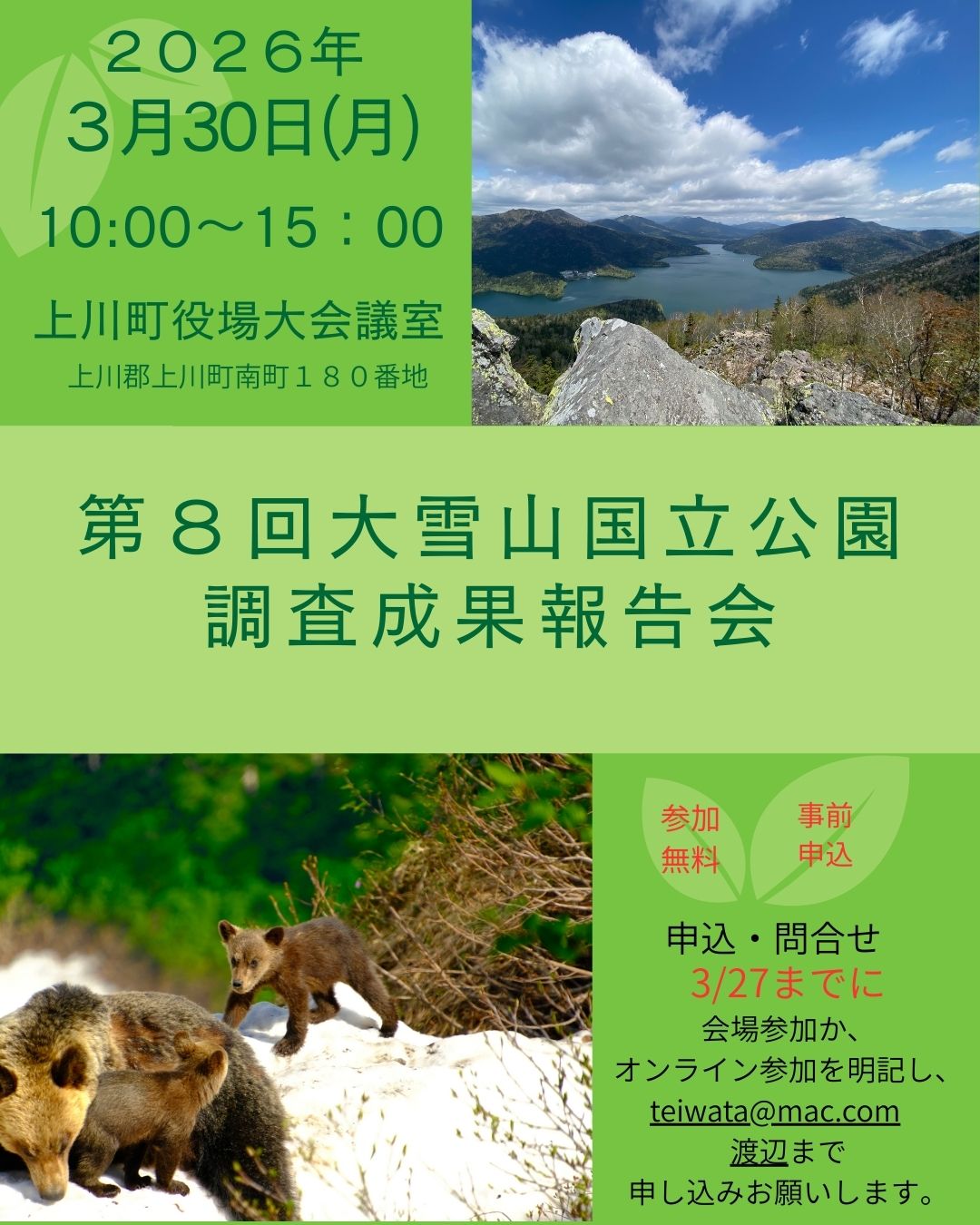 【お知らせ】第8回大雪山国立公園調査成果報告会